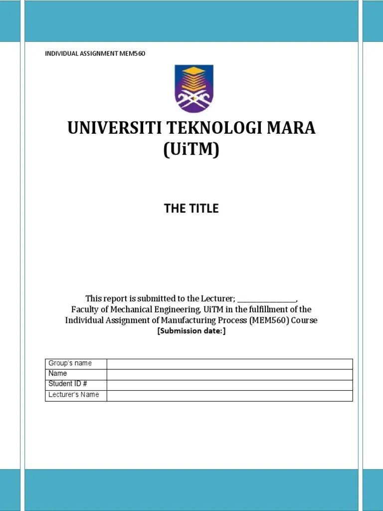 Celepang decided to keep her rm30,000 jewelleries at the hotel front desk safe. Example coverpage and title page for every assignment faculty of information management universiti teknologi mara diploma in information management (im110) I did this for my final assignment for professional development subject in uitm. Ec220 bachelor of engineering (hons.) civil engineering subject/co. Civil engineering faculty proggrame e.g.